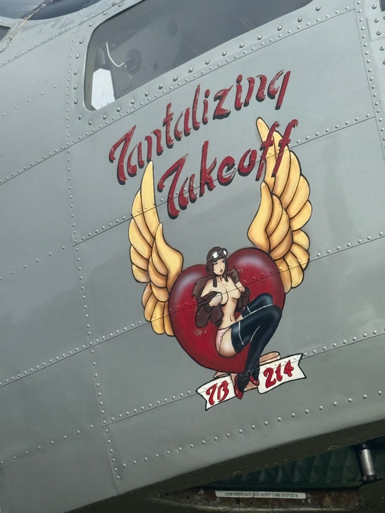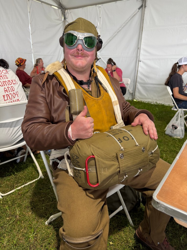 I felt sorry for him. It was hot and humid, and I was sweating in a short sleeve shirt, while this poor guy was dressed up in a leather flight suit like he was going on a mission in a B-29, sweat beading down his nose. So I went over to talk to him and although he was not with any team, he was indeed waiting for his flight in a B-29. He said his grandfather served in WWII and his great uncle died in that war, so going up in a B-29, dressed up like a rear turret gunner, was his way of honoring them and their service. Not cheap, his short flight in “Doc” was going to set him back thousands of dollars. He was happy to pay it.