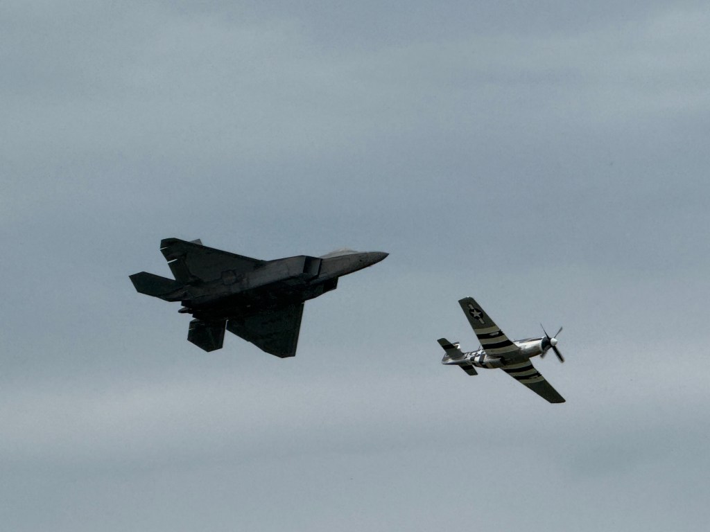 The Heritage Flight is always a crowd favorite, here a P-51 from WWII accompanied by an F-22 from, well, now.