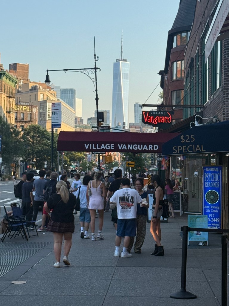 The Village Vanguard is one of the oldest and most heralded jazz clubs. In the background is One World Trade Center.