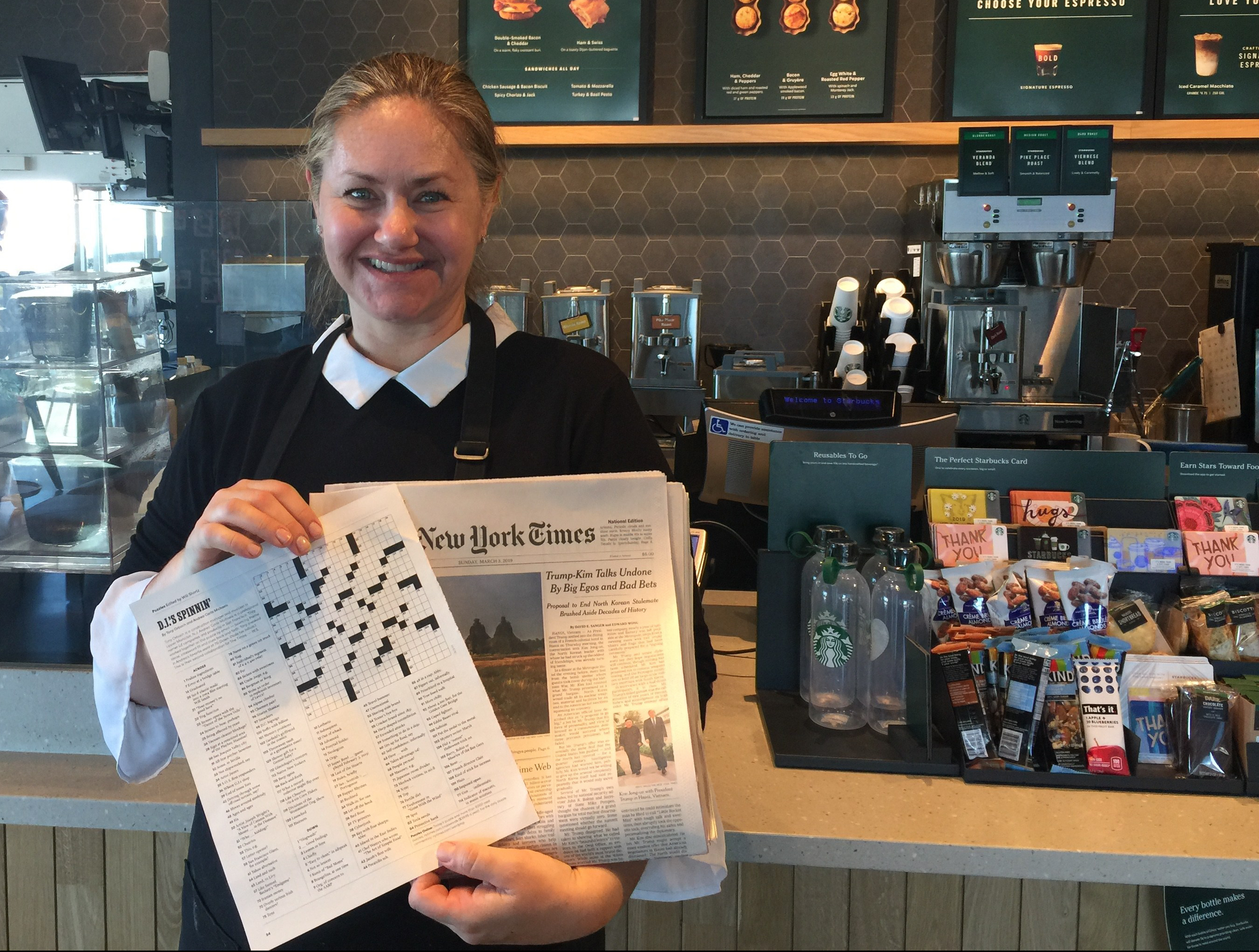 As I was reading the paper in the Happy Valley Starbucks three years ago, I carefully cut out the crossword puzzle, took it up to the cashier and asked her to give it to the manager, Tammie. A few minutes later, Tammie came bounding out from her office, thanked me and gave me a big hug. She said she would buy the paper the next Sunday, keep the crossword puzzle, and give me the rest.